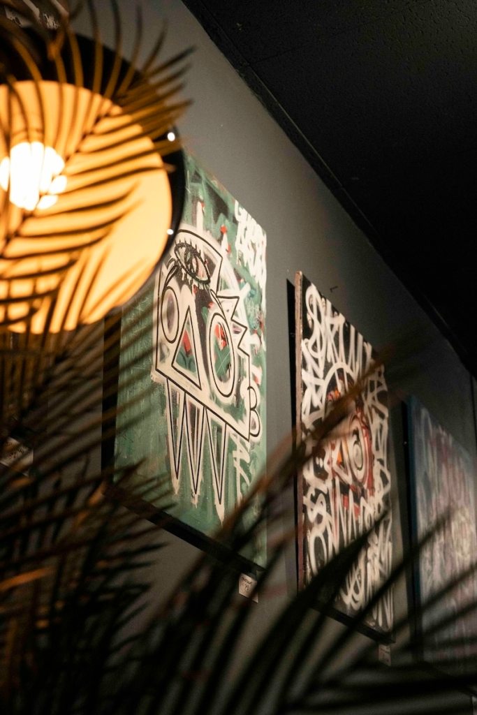 A trajectory that has encompassed numerous Brazilian-British fusion pop-ups led her to the unlikely Northern Quarter combo of Calcio Sports Bar on Dale Street with Chef’s Table experience for just eight folk in the cellar. It was a fine dining homage to the food of São Paulo (Sampa is its colloquial name). Now she has found a new home for her project, spacious enough to almost double her covers and include its own art gallery. The current exhibition, ‘Saudade’ is by one Pete Obsolete (below).
