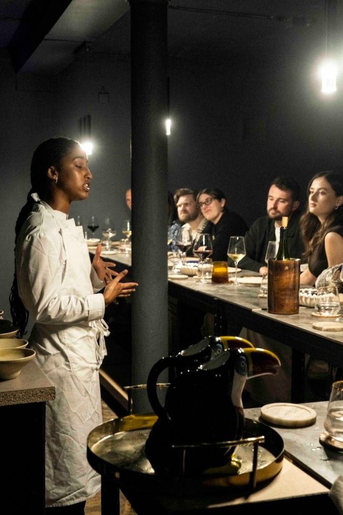 The underground world of SAMPA Chef’s Table is full of exotic flourishes. A Brazilian wonderland of toucan water jugs and vivid pink flamingo receptacles for your pre-dessert cashew apple ice lolly. That’s before chef patron Caroline Martins’s signature abstract expressionist finale – scrawls of coconut yoghurt, basil custard and mango across a slate, to be topped with meringue. That this performance takes place in a penumbral secret location in Manchester’s Northern Quarter adds to the sense of delightful disorientation.